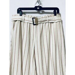 J Jill Linen Stretch Womens Large Jenna Striped Belted Wide Leg Crop Pants Ivory