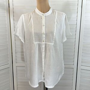 J. Jill Linen Top Size Large White Short Sleeve Lightweight