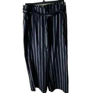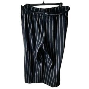 J Jill Linen Trouser Pants Women L Wide Leg Elastic Waist Belted Striped Casual