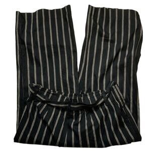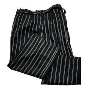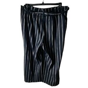 J Jill Linen Trouser Pants Women L Wide Leg Elastic Waist Belted Striped Casual