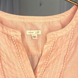 J Jill Linen Tunic Blouse Size MED Blush Pink Color Long Sleeves lagenlook