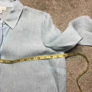J Jill Linen Tunic Petite Blue Button Down Collared Long Sleeves