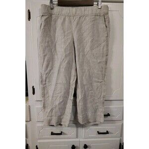 J. Jill Linen Women's Pull On Elastic Waist Pockets Natural Linen Pants Medium P