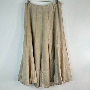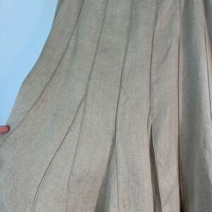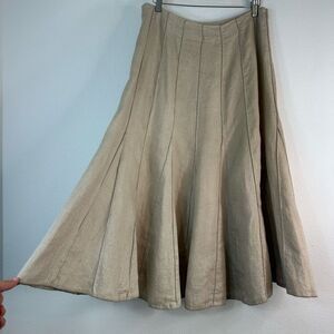 Item: J. Jill Linen Blend Metallic Khaki Pleated Midi Skirt Womens 8P Western Cottage