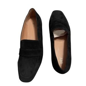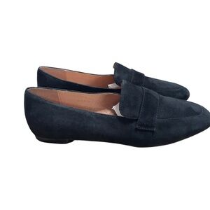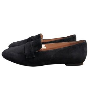 These loafers will become an instant wardrobe staple. Tested in-house to make sure they're extra-comfy, you'll want to wear them with everything from straight leg jeans to midi skirts and even your comfiest joggers. • Size: Women's 10 • Color: Black • Suede upper with leather lining • Detailed with a classic saddle strap across the upper • Almond toe • Man-made sole • Slip-on styling • Great pre-owned condition. Light signs of wear, No flaws.