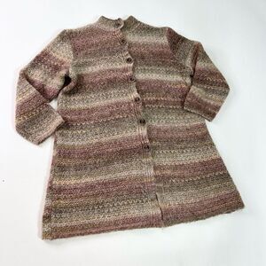 J. Jill Long Cardigan Women's Large Buttons Up Wool Blend Ombre Stripes Sweater