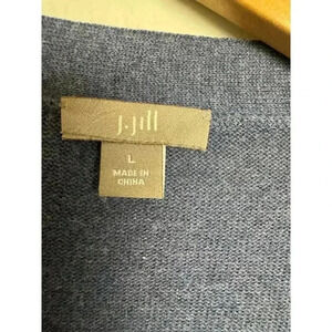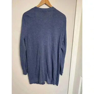 J Jill Long Lightweight Button Front Knit Cardigan Size L Blue V Neck Relaxed