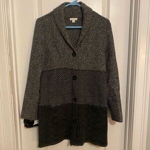 J Jill Long Line Multi Pattern Button Sweater Jacket