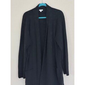 J. Jill Long Open Front Wool Blend Cardigan Sweater Women XL Black Duster Shawl