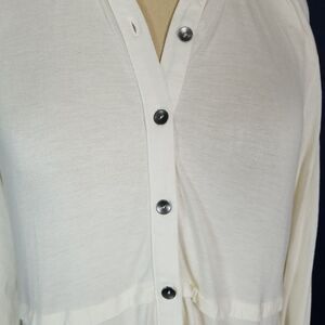 J Jill Long Sleeve Blouse Button Down Cream Tunic Top Petite XS.