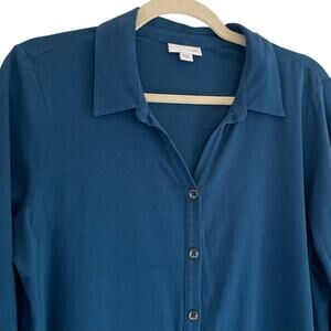 J. Jill Long Sleeve Blue Button Down Tunic/Shirt Pleated Detail, Oversized, M
