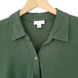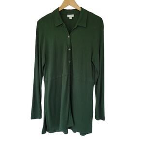 J Jill Long Sleeve Button Down Tunic Blouse Womens M Hunter Green Rayon Tencel