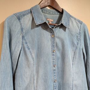 J. Jill Petite XS Long Sleeve Chambray Button Down Shirt Denim Cotton Western
