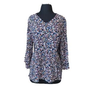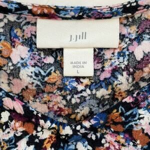 J Jill Long Sleeve Ditsy Floral Blouse Embroidered Detail 3/4 Wide Sleeve Size L