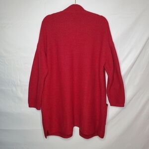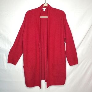 J. Jill Long Sleeve Knit Cardigan Size L Long Line Cozy Red Sweater with Pockets