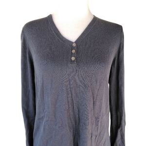 J. Jill Long Sleeve Navy Blue Henley Cotton Silk Cashmere Blend