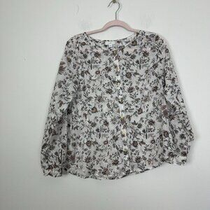 J. Jill Long Sleeve Semi Sheer Floral Button Down Gauze Material White Small