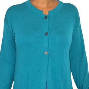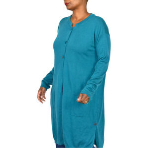 J Jill Longline Cardigan Sweater Green Teal Blue Long Duster Knit Classic Medium