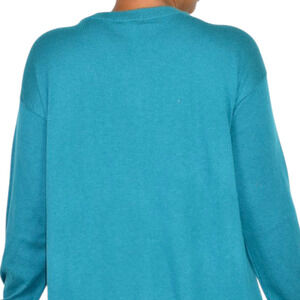 This beautiful long duster cardigan from J. Jill is a versatile and stylish layering piece. In a rich teal green color, it features a classic crew neckline and a three button front. The two large front pockets add both functionality and a relaxed aesthetic, while the side slits with button details provide a modern touch. Made from a soft and comfortable blend, this cardigan is perfect for adding an elegant layer to any outfit, from casual jeans to a more polished look.
