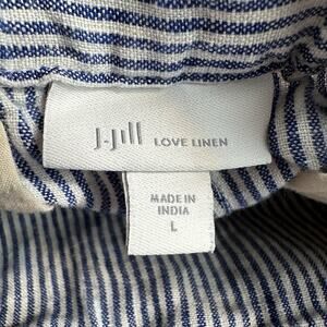 J Jill Love 100% Linen Size Large Blue White Stripe Crop Wide Leg Pants 36x23