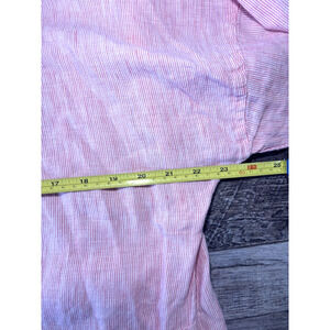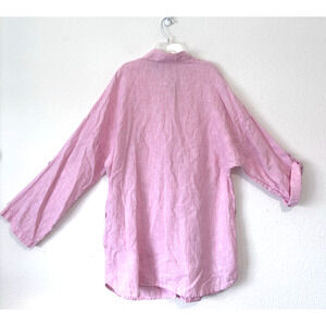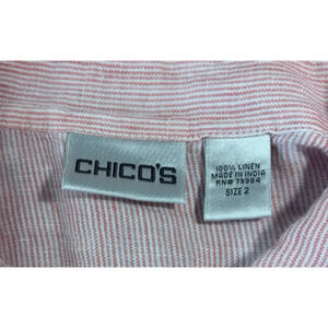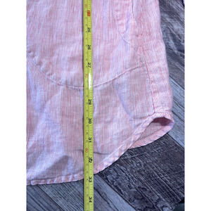 Chico’s 100% Linen Tunic Top Womens Size 2X Pink Striped Button Front With Pockets