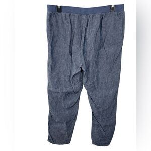 J. Jill Love Linen 100% Linen Blue Chambray Cropped Pull-on Pants Women's Size LARGE