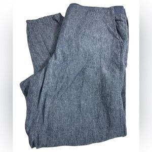 J. Jill Love Linen 100% Linen Blue Chambray Cropped Pull-on Pants Women's Size L