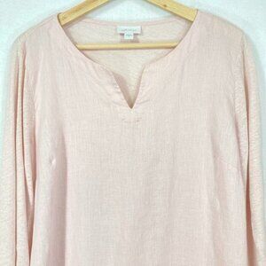 J. Jill Love Linen 100% Linen Pink Split Neck 3/4th Sleeve Boho Tunic Blouse
