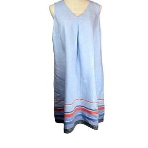 J. Jill Love Linen 100% Linen Shift Dress Red White Blue NWOT Sleeveless #905