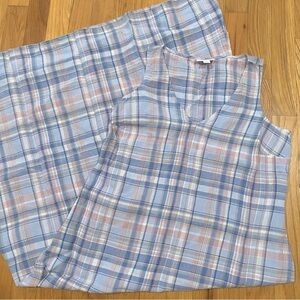 V-Neck Style Long Maxi Length Linen Sleeveless Plaid Coastal Grandma Grandmacore Dress Multicolored with Pockets