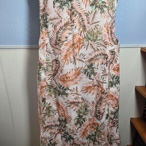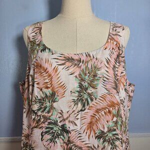 J. Jill Love Linen 1X 100% Linen Pink Green Tropical Sleeveless Long Tank Dress