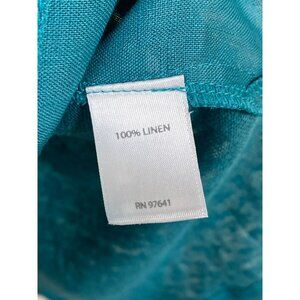 J. Jill Love Linen 3/4 Sleeve Top Women size Medium Petite Teal Button lagenlook