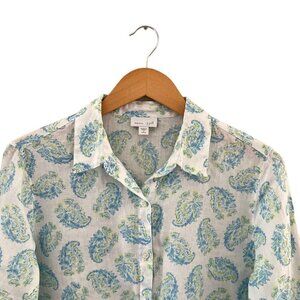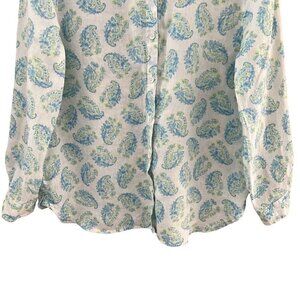 J Jill Love Linen Blouse Button Up Long Sleeve Paisley Print Size S