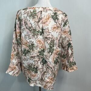 J. Jill Love Linen Blouse Tunic size Medium Pink Green Linen Tropical Beach Slim