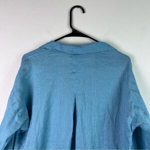 J. Jill Love Linen Blue Button Up Top (XS) 100% Linen, Tunic Shirt, Earthy Chic