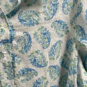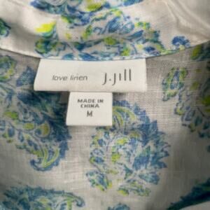 J. Jill Love Linen Blue Floral Button Down Size Medium Tunic Length Lightweight