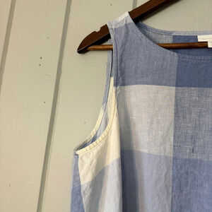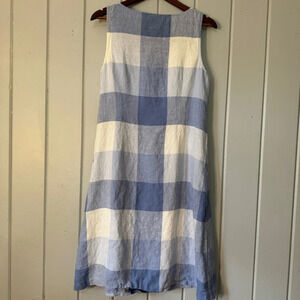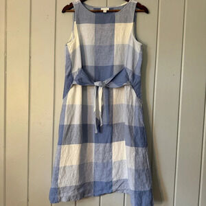 J Jill Love Linen Blue Gingham Tie front Dress Size Medium Petite