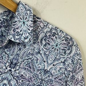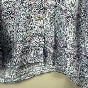 J Jill Love Linen Blue Purple Button up Shirt in Size Large