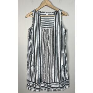 J Jill Love Linen Blue Striped Sleeveless Coastal Dress Size Small Pockets Wm’s