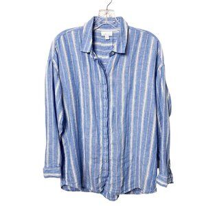 J. Jill Love Linen Blue White Stripe Button Front Long Sleeve Shirt Blouse Tunic Women's Size Small