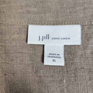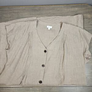 J. Jill Love Linen Button Down Shirt Dress Midi XL Tan Brown Pintuck Lagenlook