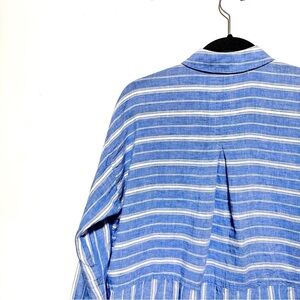 J. Jill Love Linen Button Down Shirt Long Sleeves Stiped Blue and White Color XS