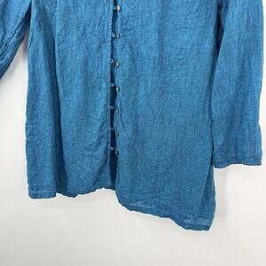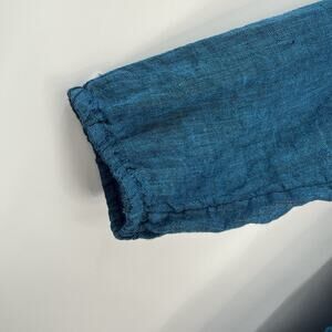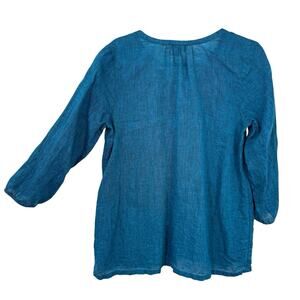 J Jill Love Linen Button Up Top size Small Jewel Teal 3/4 Sleeves V Neck Classic