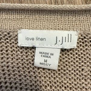 J Jill Love Linen Cardigan Women’s Med Sweater Beige Neutral Pockets Coastal