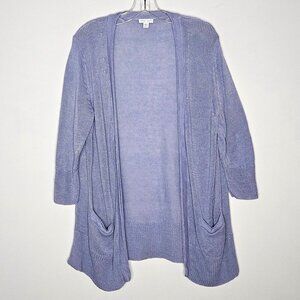J Jill Sweater Womens Small Love Linen Open Front Cardigan Periwinkle Blue