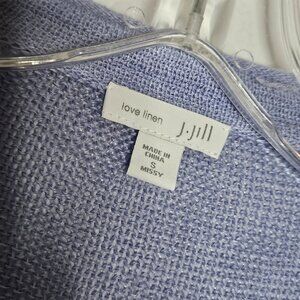 J Jill Love Linen Cardigan Womens Small Open Front Boho Linen Periwinkle Blue