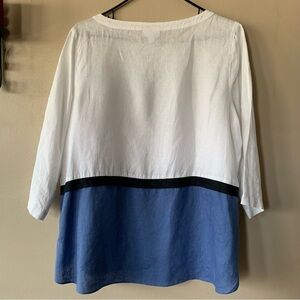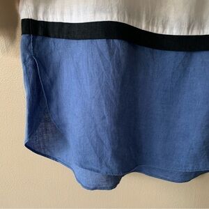 J. Jill Love Linen Color Block Blue and White Stripe Blouse Size Medium