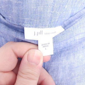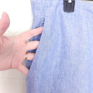 J. Jill Love Linen Denim Blue Linen Cropped Wide Leg Pants Side Zip L