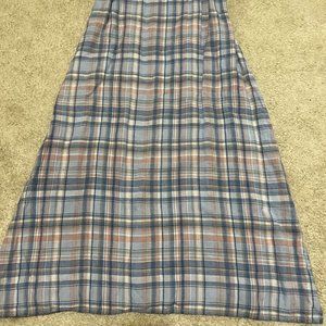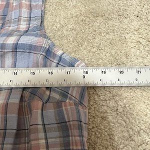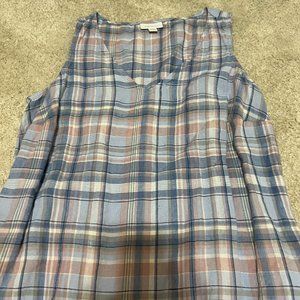 J. Jill Love Linen Dress Size Small Plaid Pink Blue Sleeveless Midi V Neck Shift