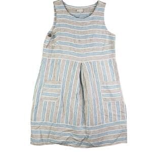 J Jill Love Linen Dress Women’s Large L Gray Blue Striped Geometric Sleeveless